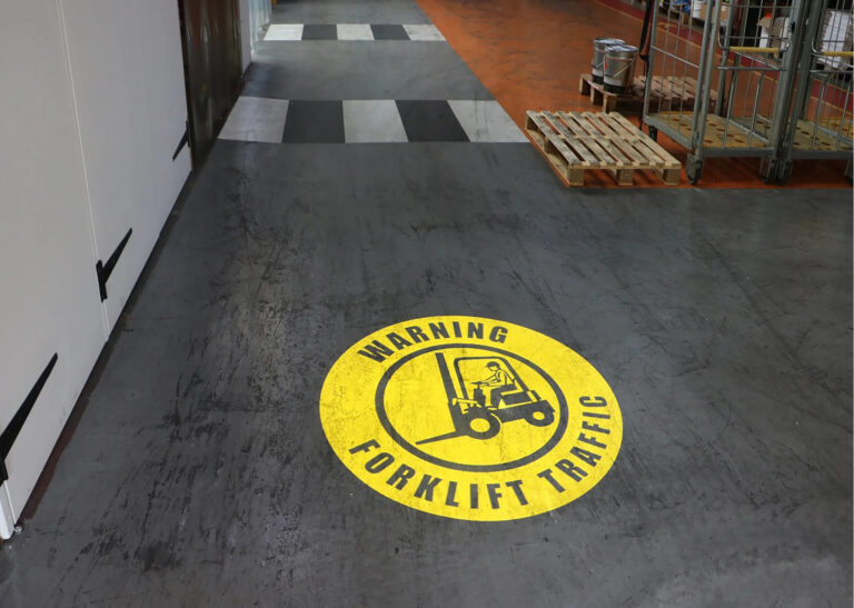 Warehouses are high-traffic environments where the risk of vehicle-pedestrian accidents is elevated. Projecting highly visible warnings like “Forklift Traffic” or “Look Out” directly onto the main thoroughfares provides an undeniable alert. Projected crosswalks and stop signs on the floor are impossible to ignore and offer a more defined boundary than painted lines, which wear away quickly.